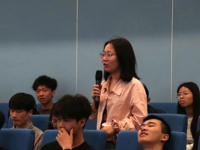 最后提问环节同学们积极举手提问与校友互动交流,讲座现场气氛热烈。