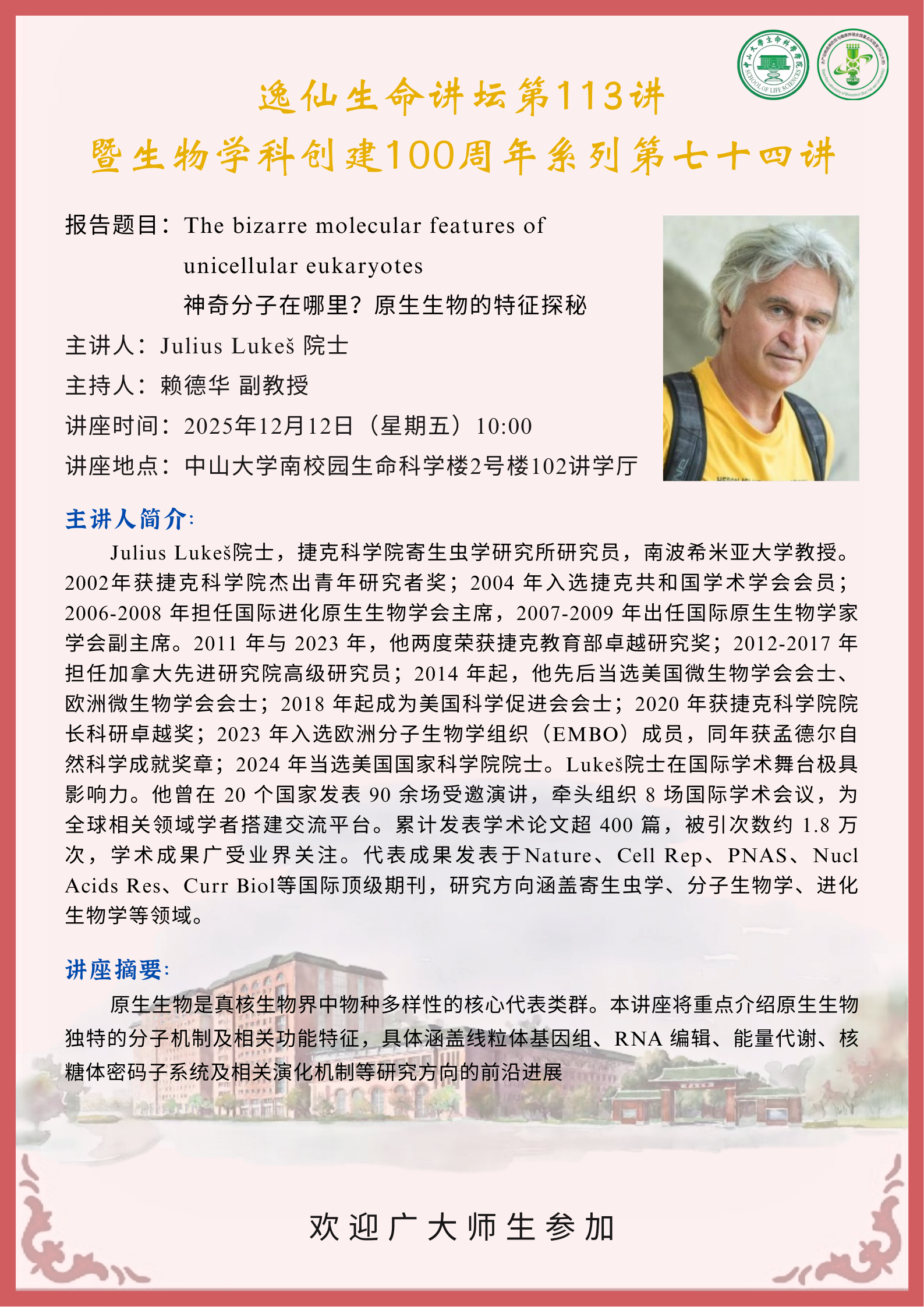 2025年12月12日色情小说网站 逸仙生命讲坛第113讲:The bizarre molecular features of unicellular eukaryotes