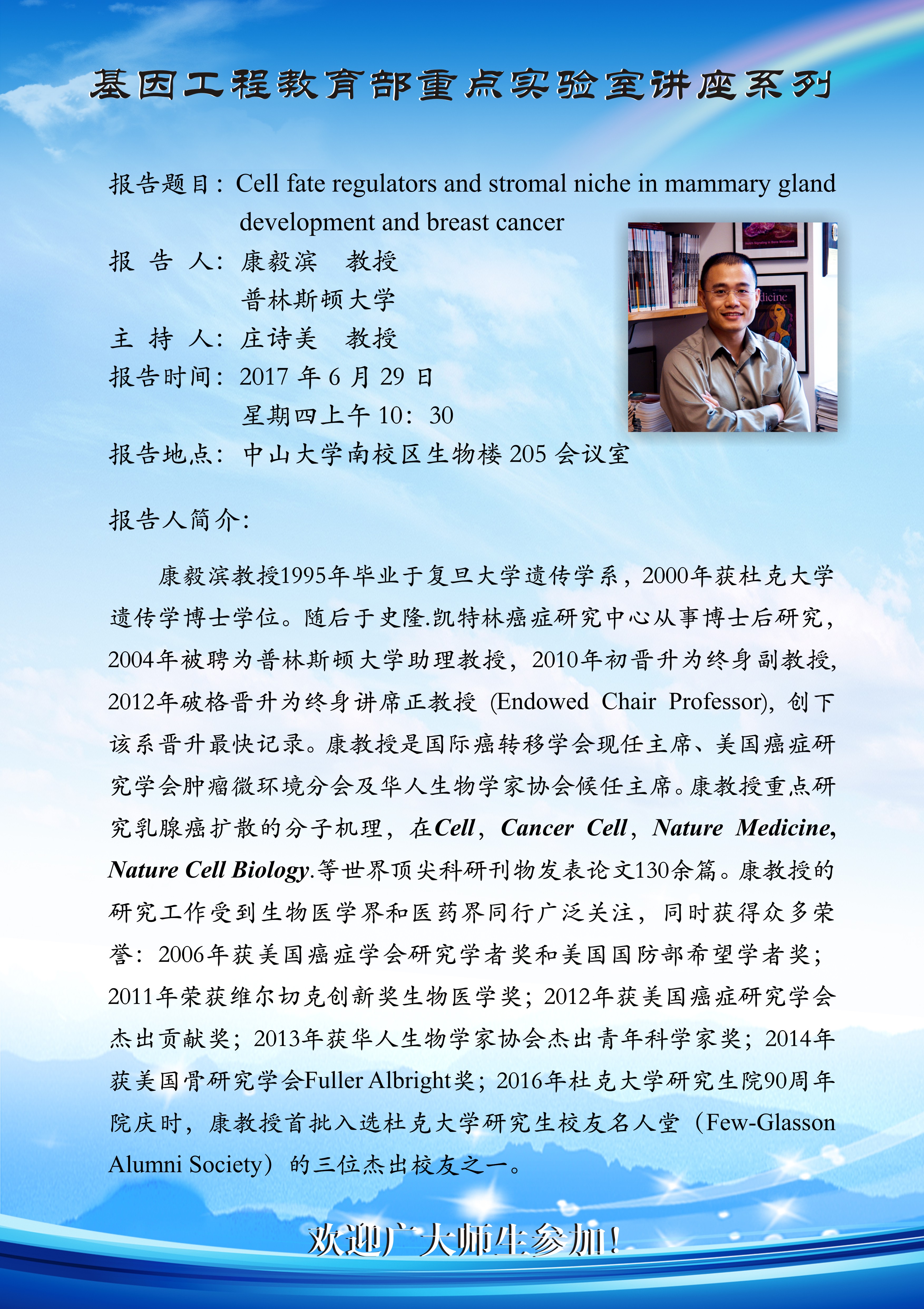 欢迎参加6月29基因工程教育部重点实验室学术讲座