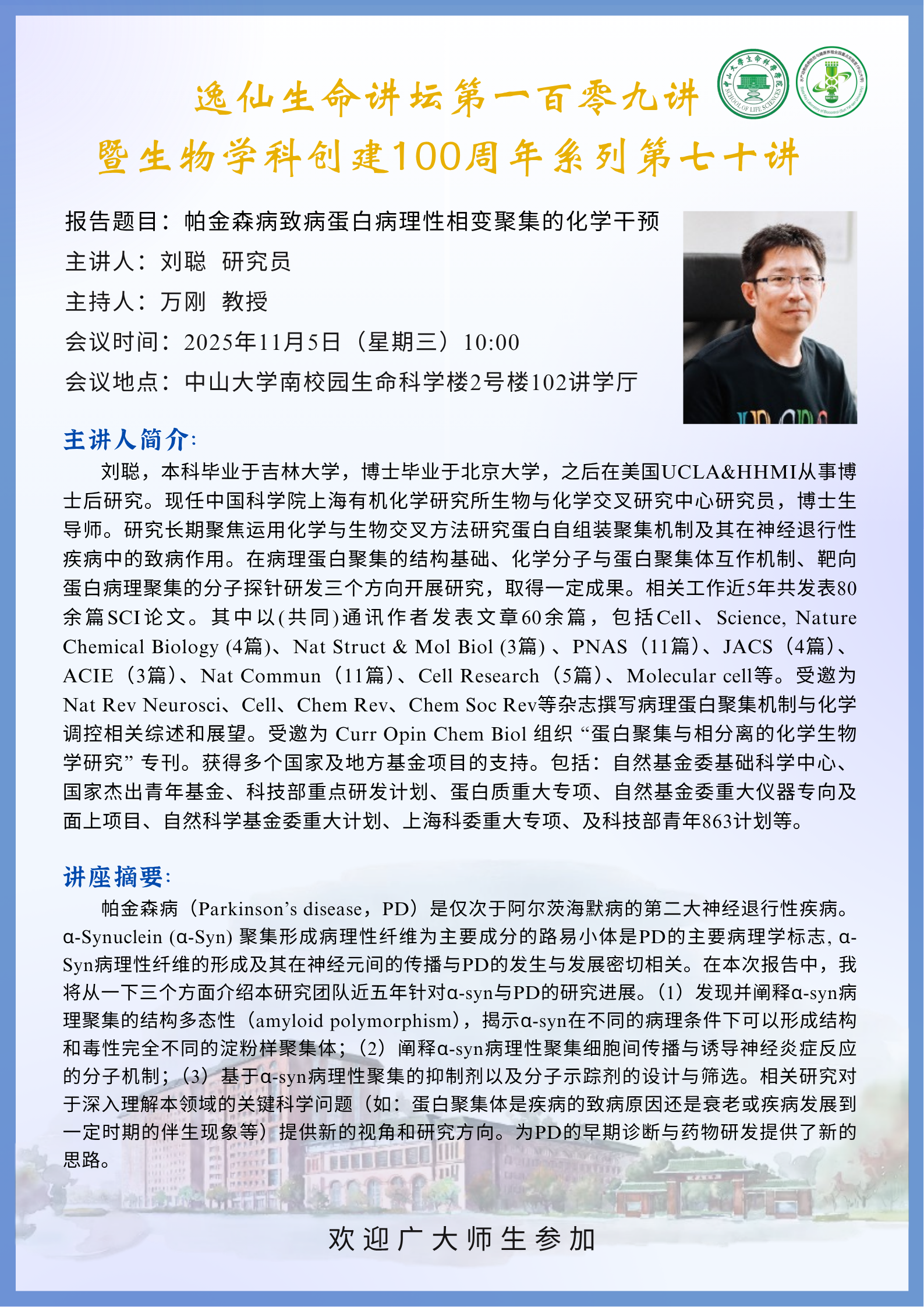 导航痕迹 色情小说网站 科学研究 学术讲座 色情小说网站 创建100周年系列第七十讲:帕金森病致病蛋白病理性相变聚集的化学干预 扫描此二维码分享 色情小说网站 创建100周年系列第七十讲:帕金森病致病蛋白病理性相变聚集的化学干预 发布人:董静飞 发布日期:2025-11-02